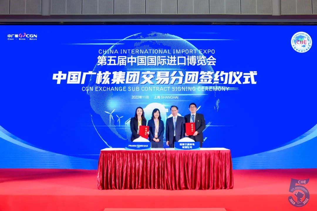 11月7日,第五屆中國國際進(jìn)口博覽會中國廣核集團(tuán)交易分團(tuán)簽約儀式在國家會展中心(上海)舉行。