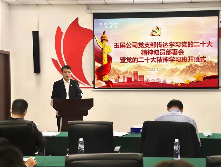 10月31日,玉屏公司組織召開了傳達(dá)學(xué)習(xí)黨的二十大精神動員部署會。 會議要求,一要統(tǒng)一思想、高度重視,充分認(rèn)識到黨的二十大的重大意義,把學(xué)習(xí)宣傳貫徹黨的二十大精神作為當(dāng)前和今后一個時期的首要政治任務(wù)抓緊抓牢抓實;二要把握主題,全面準(zhǔn)確學(xué)習(xí)領(lǐng)會黨的二十大提出的新思想新論斷新任務(wù)新要求;三要精心安排,認(rèn)真組織,在學(xué)懂弄通做實上下功夫。切實把學(xué)習(xí)成效轉(zhuǎn)化為全方位推進(jìn)工作高質(zhì)量發(fā)展的具體行動和實際成效,以昂揚的精神狀態(tài)為中廣核高質(zhì)量發(fā)展貢獻(xiàn)力量。