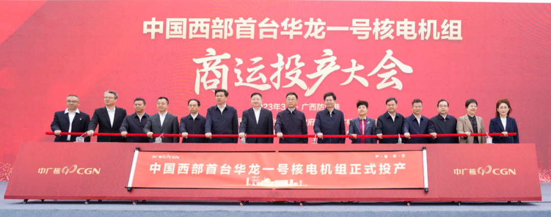 2023年3月25日,我國西部地區(qū)首臺“華龍一號”核電機組——中廣核廣西防城港核電站3號機組投產(chǎn)儀式暨新聞發(fā)布會在防城港核電基地召開。