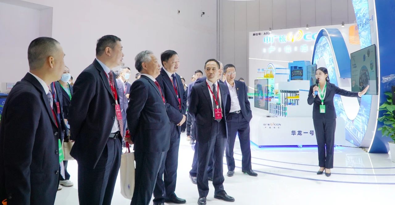 開幕式后,與會嘉賓來到中廣核展臺,聽取并了解中廣核近年來在“華龍一號”批量化建設(shè)、科技創(chuàng)新等方面的高質(zhì)量發(fā)展成果。中央電視臺等媒體記者在展會現(xiàn)場,就中廣核科研創(chuàng)新成果“華龍一號”與“和睦系統(tǒng)”等進(jìn)行采訪報(bào)道。