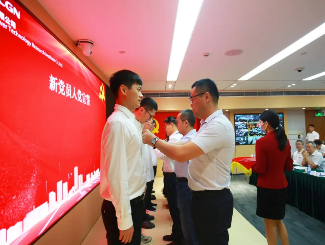 中廣核研究院有限公司舉辦慶祝中國(guó)共產(chǎn)黨成立102周年主題活動(dòng)。中廣核研究院黨委書(shū)記、總經(jīng)理舒睿講授主題教育專(zhuān)題黨課。會(huì)上舉行了新黨員宣誓儀式,各入黨介紹人為新黨員鄭重佩戴黨員徽章,并贈(zèng)送《中國(guó)共產(chǎn)黨章程》,7名新黨員整齊列隊(duì),面向黨旗莊嚴(yán)宣誓,全體與會(huì)黨員一起重溫入黨誓詞。