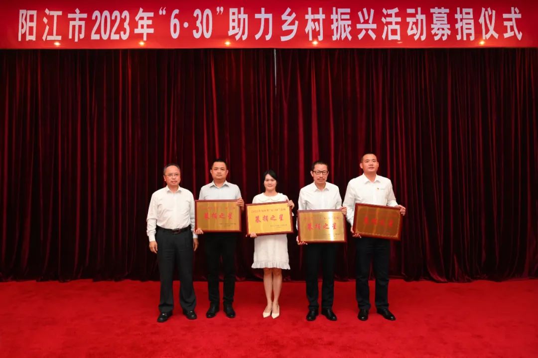 同一日,在陽江市舉行的2023年“6·30”助力鄉(xiāng)村振興活動(dòng)募捐儀式上,陽江核電連續(xù)第六年榮獲“募捐之星”榮譽(yù)稱號(hào),陽江核電黨委副書記葉志強(qiáng)代表公司接受榮譽(yù)牌匾。