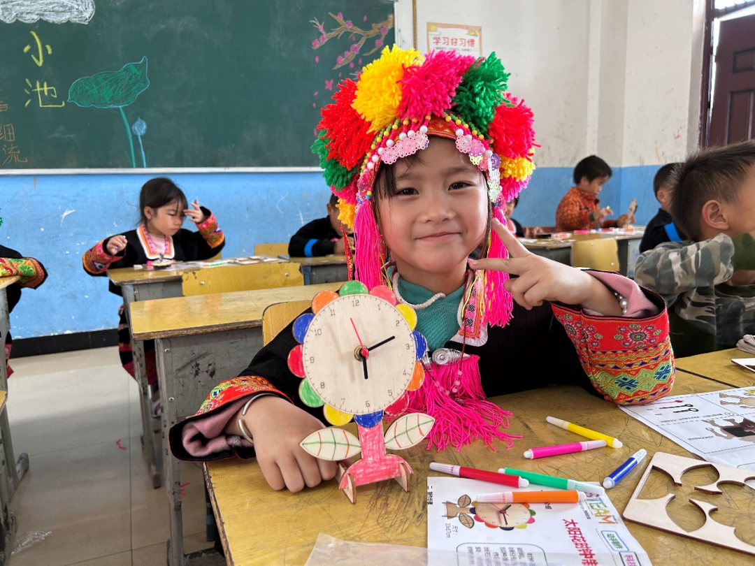 今天,孩子們將迎來一節(jié)新奇的手工科普課。在將課件和手工用品進(jìn)行分配后,老師們兩兩一組進(jìn)入各自負(fù)責(zé)的班級,這次手工課特別針對不同年級的孩子進(jìn)行了不同的設(shè)計(jì),一、二年級是手工鬧鐘制作,三、四年級是造紙術(shù),五、六年級是星球彩繪。老師耐心細(xì)致地講解后,正式進(jìn)入動手環(huán)節(jié),每個孩子都非?;顫娗页錆M干勁,在隨心所欲地創(chuàng)造著自己的作品,臉上都洋溢著滿滿的自豪。他們歡呼雀躍,高興地向我展示著他們的成果,整個教室都充滿了歡笑聲和活力,這種愉快的氛圍深深感染著我。