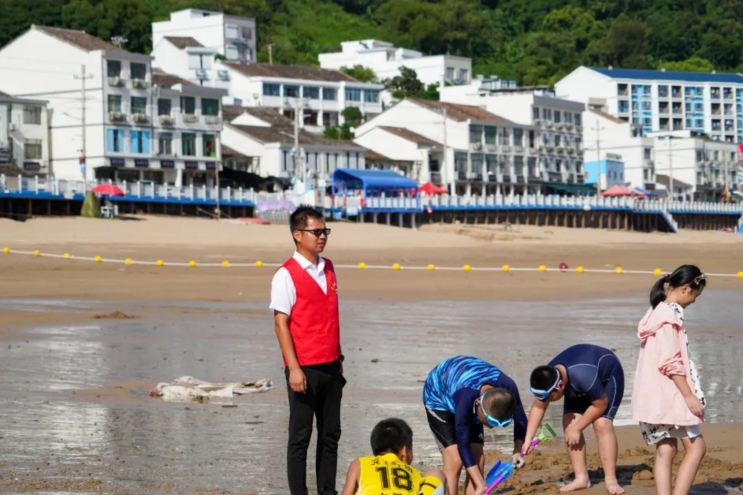 ▲陶學(xué)厚作為黨員志愿者參與沙灘安全管理工作。