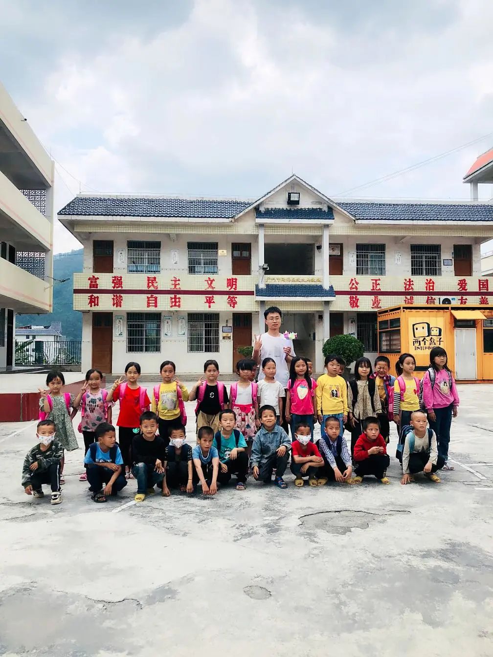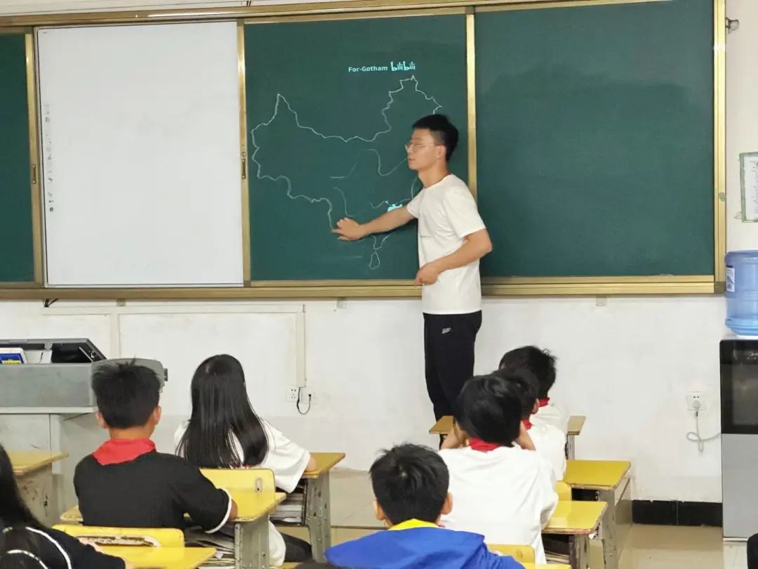 山外不僅有山,還有一群可愛的孩子。當我初到學校時,孩子們就圍了上來:“老師,你也是中廣核的嗎?老師,你叫什么名字呀?老師,你什么時候離開?老師,你教我們什么呀……”他們知道很多網(wǎng)絡熱詞和流行歌曲。孩子們把我們圍成一圈,笑著、鬧著,充滿了熱情。他們和大山外的孩子一樣活潑可愛。