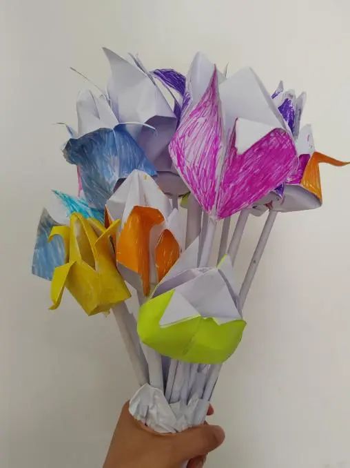 在最后一天家訪之前,孩子們跑過來拉著我說:“老師,我們有禮物要送給你?!蔽冶缓⒆觽兇負碇叩搅私淌遥麄冏隽撕芏噘R卡,在上面“歪歪扭扭”地寫著:“老師,我們都喜歡你!”我淚眼婆娑,他們雖然年幼,但是那份真誠和對喜歡的人的態(tài)度是無價的。就在我發(fā)愣的時候,孩子們又拿出一束用紙折成的鮮花遞給了我??粗麄兡樕涎笠绲奈⑿?,我想這便是最美好的禮物吧!我緩緩地接過花束,他們也高興地歡呼起來。