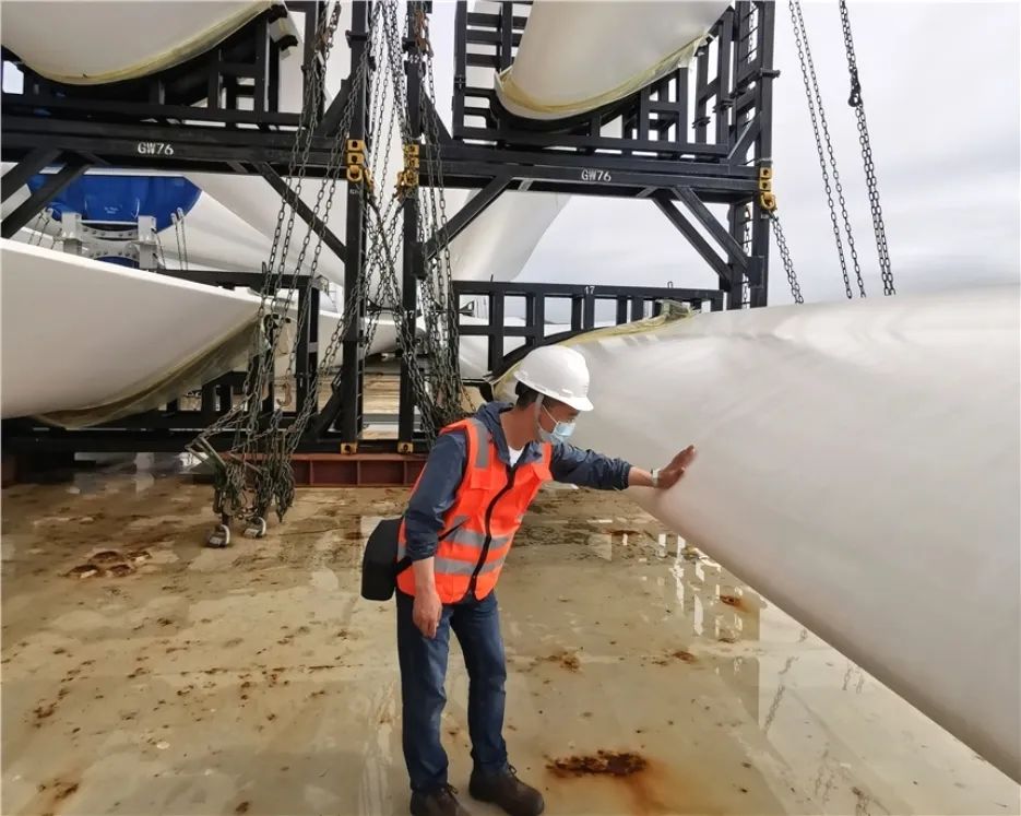 ▲陳少陽(yáng)驗(yàn)收檢查到港風(fēng)機(jī)葉片