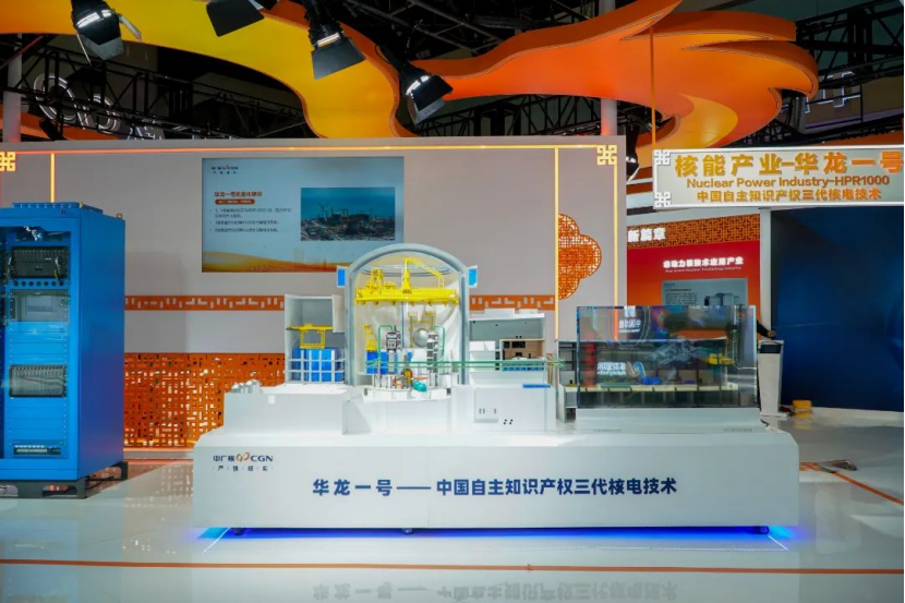 開幕式后,與會嘉賓來到中廣核展臺,聽取并了解中廣核近年來在“華龍一號”批量化建設、科技創(chuàng)新等方面的高質(zhì)量發(fā)展成果。