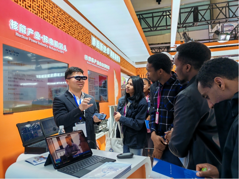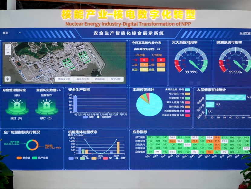 展覽現(xiàn)場,觀眾可以戴上AR智能頭盔進行人機交互,體驗操縱機器狗巡檢核電廠房,還可以“深入”寧德核電作業(yè)管理中心,沉浸式接觸全范圍模擬機,直觀感受“元宇宙”在核電領域的前沿應用。中廣核以科技創(chuàng)新引領核能新質(zhì)生產(chǎn)力發(fā)展,以“數(shù)智化”賦能提升核電管理水平,確保核安全萬無一失。