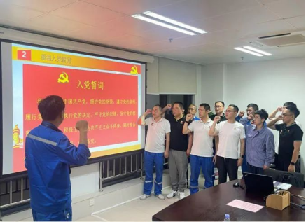 中廣核工程施工管理中心黨委組織各黨支部支委重溫入黨誓詞,黨員同志面向黨旗,集體肅立,宣誓聲鏗鏘有力。有黨員代表表示:“能夠在這個(gè)特殊的日子里和大家共同重溫入黨誓詞,我感到十分榮幸和激動(dòng),后續(xù)我將在‘華龍一號(hào)’批量化建設(shè)過(guò)程中努力貢獻(xiàn)自身力量,為黨的事業(yè)持續(xù)奮斗?!?