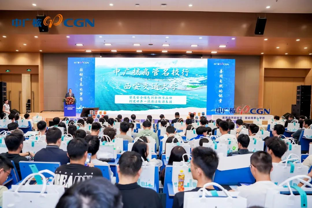 中廣核技黨委書記、董事長李勇作為西安交通大學(xué)校友代表,結(jié)合自身經(jīng)歷與師弟師妹們分享了中廣核人才培養(yǎng)、職業(yè)發(fā)展、薪酬保障等相關(guān)情況,并介紹了本次校園招聘具體安排。西安交通大學(xué)國家卓越工程師學(xué)院副院長張英佳、人力資源部副部長魯偉、就創(chuàng)中心副主任苗潔,集團(tuán)公司梅俊,中廣核研究院馬江山和先進(jìn)模范代表王婷,中廣核鈾業(yè)田德強(qiáng)等參加有關(guān)活動。