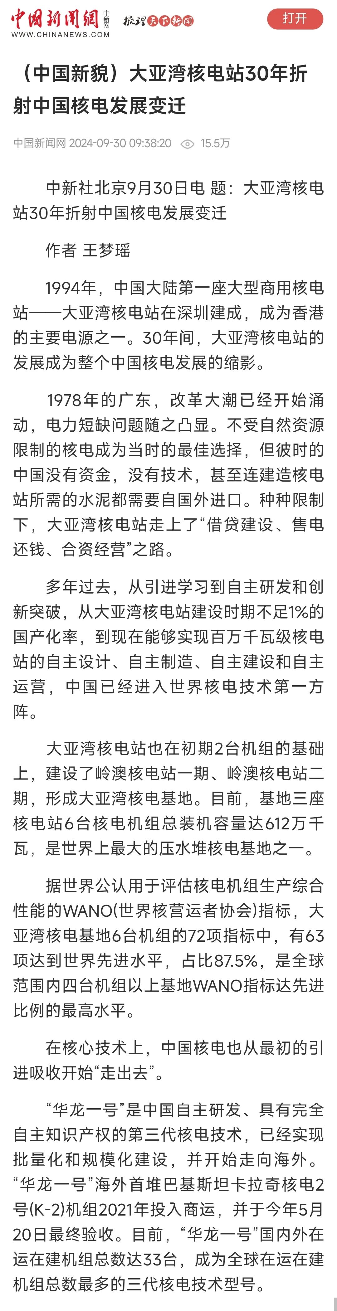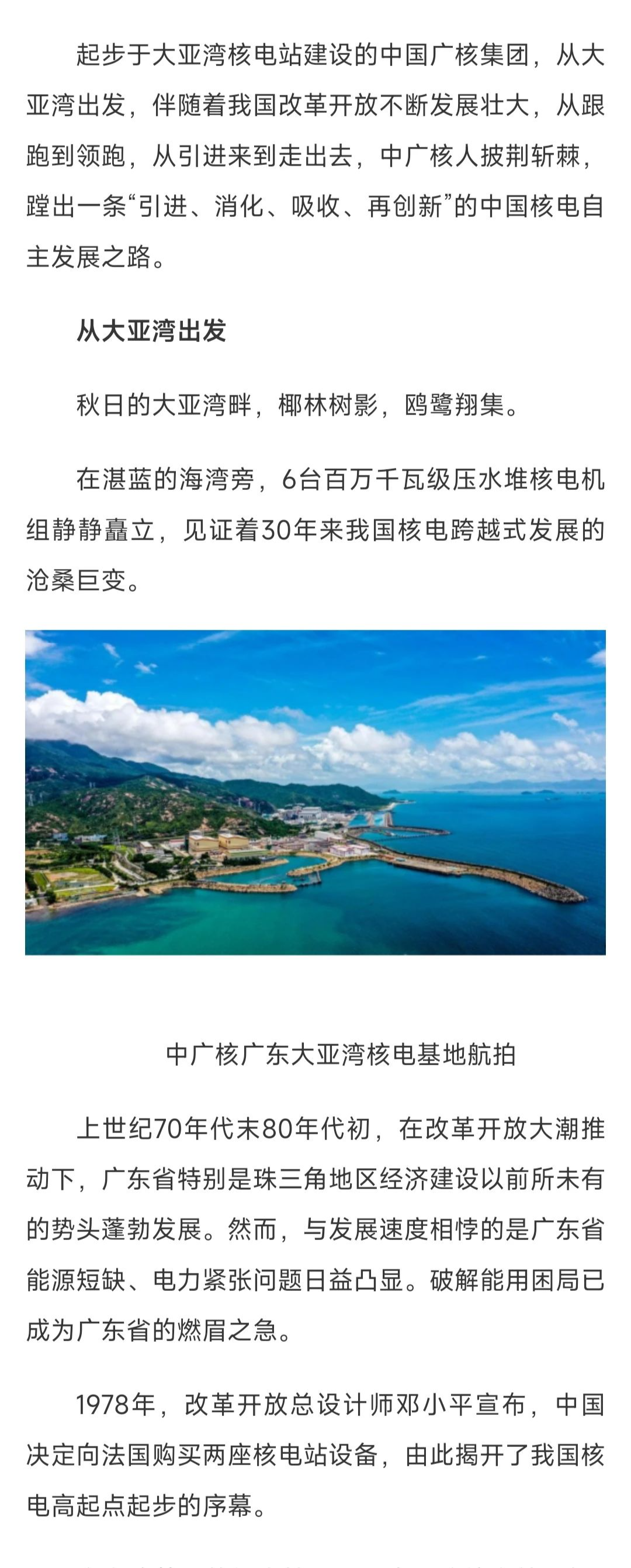 聚焦報(bào)道了中廣核從大亞灣核電站起步