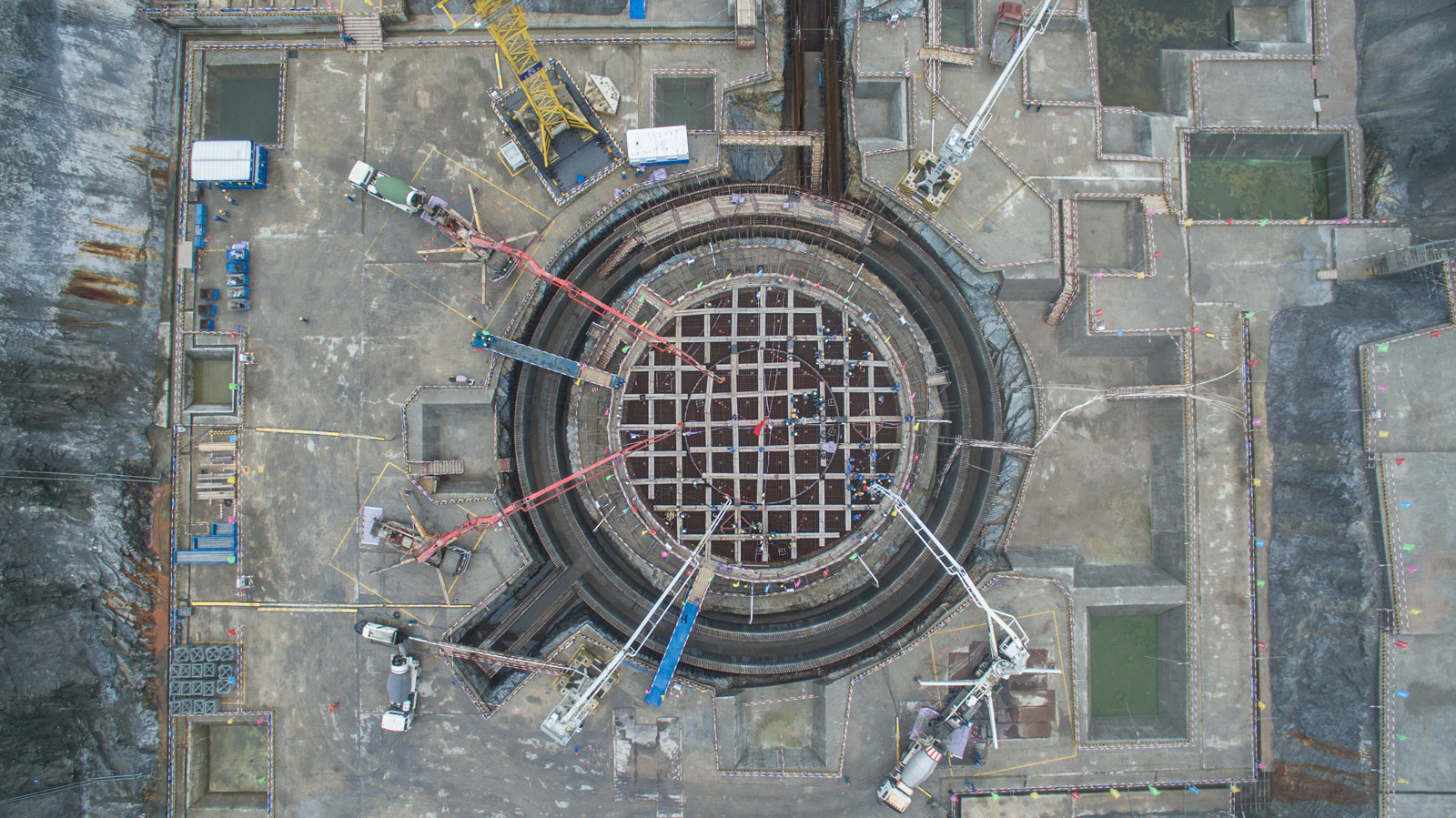 第一罐混凝土開始澆筑,可以看到筏基上的工人們已經(jīng)開始忙碌啦~
